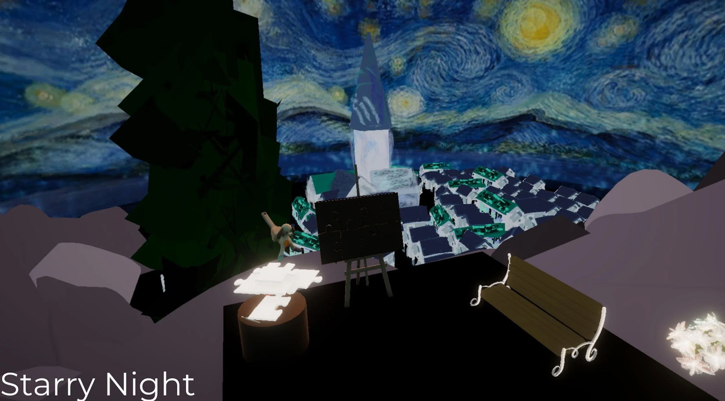 This one idea kept coming back — the idea of having a central area the player of our experience starts in. This would be called the Plaza. A place for the user to start in, and since there is a lot of stimulation going on immediately when a stroke patient enters a headset, we want there to be a relaxing, yet encouraging environment, geared primarily toward the current health situation of the patient. One idea we had was to have three portals, each of which represent a different painting. We’ve decided Starry Night, Dogs Playing Poker, and last but not least, The Bedroom. Our teammate Belize sent out a phenomenal survey, getting approximately 70 responses about which painting they would like to see as an immersive environment. And out of about 10 different paintings, Starry Night and Dogs Playing Poker had wide acceptance in the survey. During this time, I was establishing a way to view our project in the headset, along with a brand new way of using the player in Unity as a game controller, so we can apply things like gravity to the user and other effects much more easily.